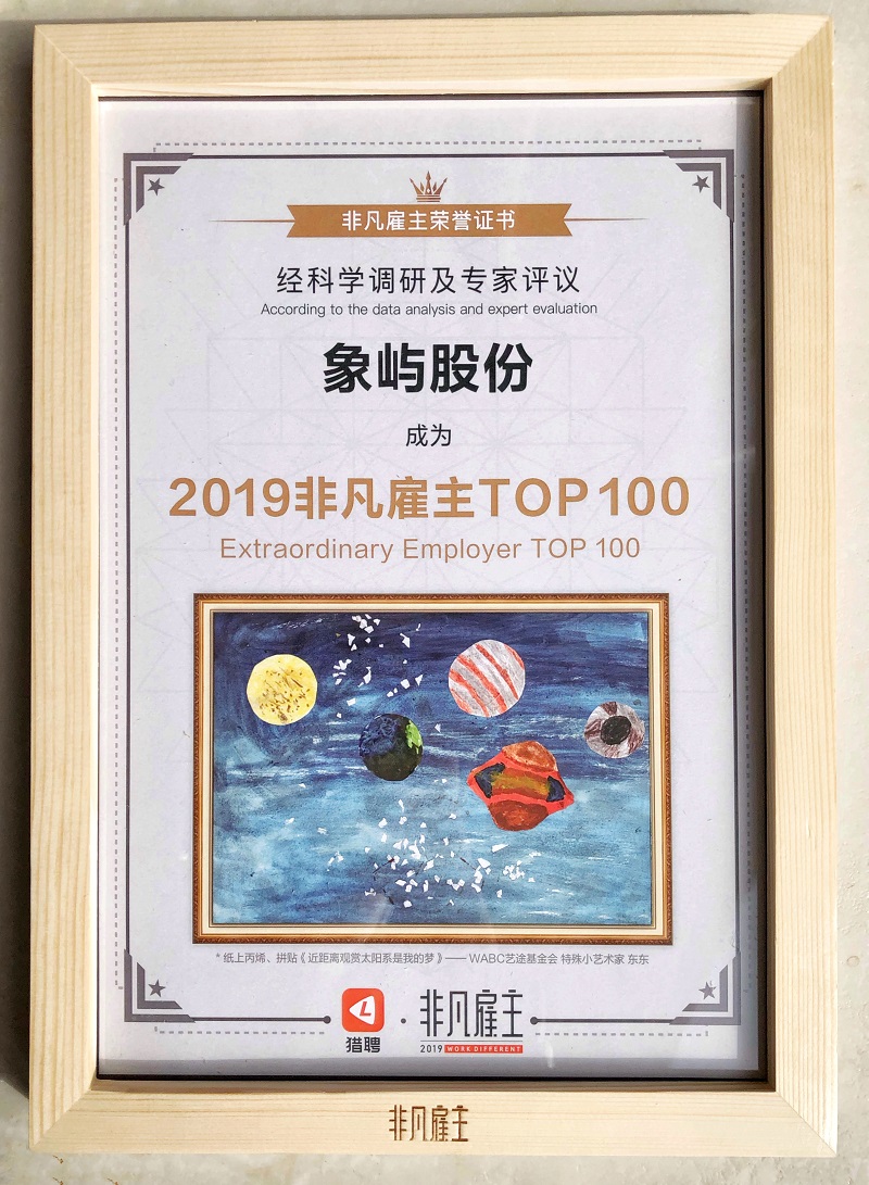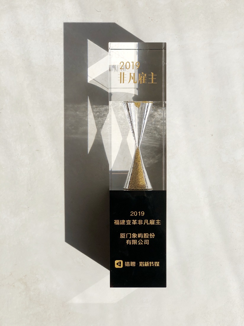 12月13日,由國內(nèi)精英職業(yè)發(fā)展平臺獵聘網(wǎng)主辦的2019非凡雇主“非凡之夜頒獎盛典”在廣州舉行。象嶼股份從上萬余家企業(yè)中脫穎而出,入選“2019非凡雇主TOP 100” 及“2019福建變革非凡雇主”。