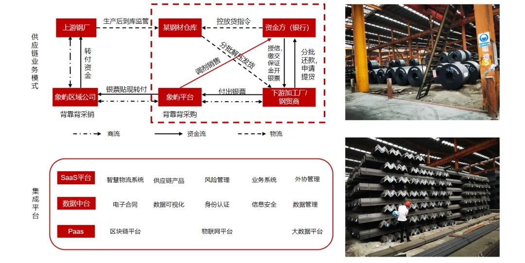 象嶼股份作為供應(yīng)鏈核心企業(yè),借助IOT(物聯(lián)網(wǎng))、區(qū)塊鏈、AI等技術(shù),圍繞塑化、鋁產(chǎn)品、鋼材等產(chǎn)品進(jìn)行倉單質(zhì)押融資,通過數(shù)字化建設(shè),輔助背書客戶資信、貨權(quán)監(jiān)管和輔助銷售,獲取資金方的認(rèn)可,幫助中小微企業(yè)客戶增信,解決中小微企業(yè)融資難的問題。目前象嶼智慧物流平臺已獲得建行總行、普洛斯等多家金融機構(gòu)數(shù)字化監(jiān)管倉準(zhǔn)入,《人民日報》等媒體也作了專題報道。